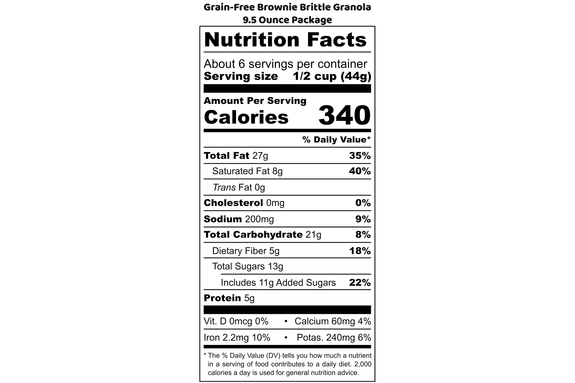Our grain-free, gluten-free, vegan Brownie Brittle Granola is for all the cocoa and coconut lovers out there. Starting with a rich hazelnut base, we mix in nuts, seeds, a generous helping of coconut, and organic cocoa powder. Organic maple syrup brings it all together into deliciously light and crisp cocoa clusters. At 5 grams of fiber, 5 grams of protein, and 10% of your daily recommended iron intake per serving, this is the most snackable nutrition you’ll eat all day.